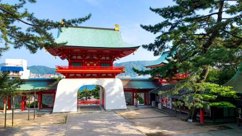 赤間神宮位於山口縣下關市,是祭祀安德天皇的神社,以鮮紅色的水天門聞名,面向關門海峽,景色壯麗。境內亦供奉平家一門,與壇之浦合戰有深厚淵源,每年舉行「先帝祭」追悼平家武將,具有濃厚的歷史與文化價值。