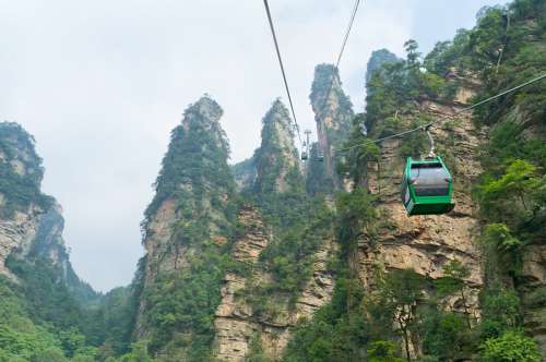 天子山位於張家界國家森林公園的北部,東臨索溪峪景區,因其原始的自然風光而聞名,天子山纜車,全長2091公尺,單程運行時間最快6分鐘,每節車廂可容納8人,天子山纜車,既舒適又安全,沿線風光奇絕,奇松怪石,莽莽翠林,幽幽泉水,嬉戲獼猴,盡收眼底,令人歎為觀止。「誰人識得天子山,歸來不看天下山」