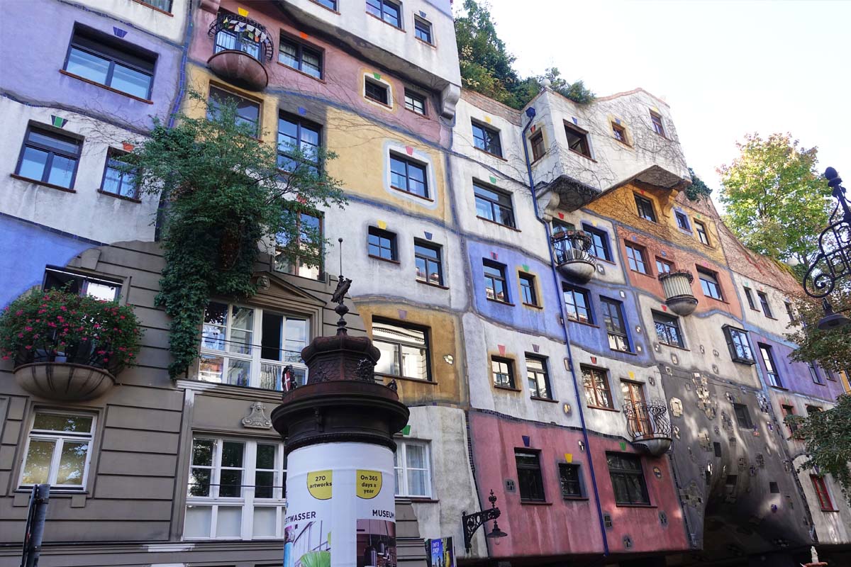 百水公寓(Hundertwasser Haus)是奧地利維也納的一座藝術性住宅建築,以奇特、彩色和有機的外觀著稱。由藝術家弗里德里希·昆德特瓦薩(Friedensreich Hundertwasser)設計,該建築採用不規則的形狀、傾斜的牆壁、突出的陽台和多彩的立面,展現出獨特的藝術風格。內部住宅單位同樣充滿藝術氛圍,充滿曲線、顏色和有趣的設計元素。這座建築強調對自然的尊重,提倡有機的建築和生活方式。百水公寓成為維也納的著名旅遊景點之一,吸引著來自世界各地的遊客和藝術愛好者前來參觀。