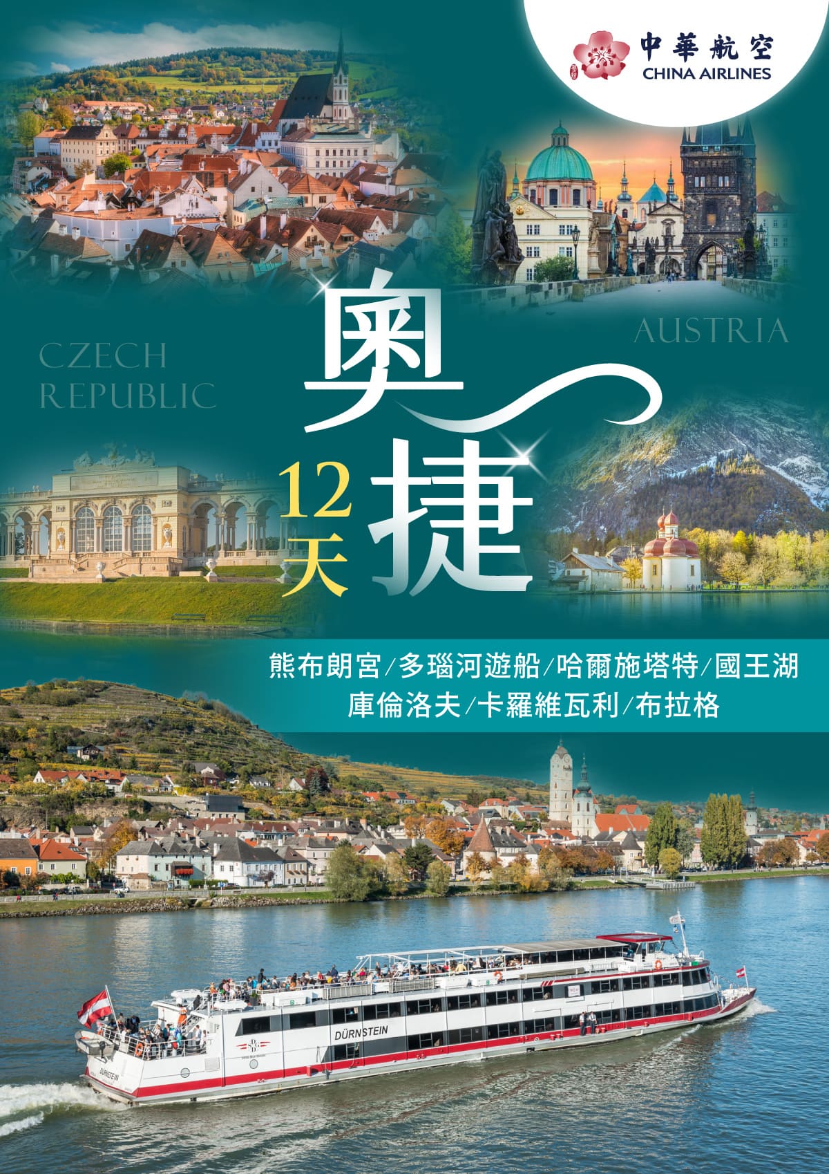 最美東歐.奧地利、捷克12日~中華直飛、雙點進出、三主城連泊、多瑙河遊船、國王湖、庫倫洛夫